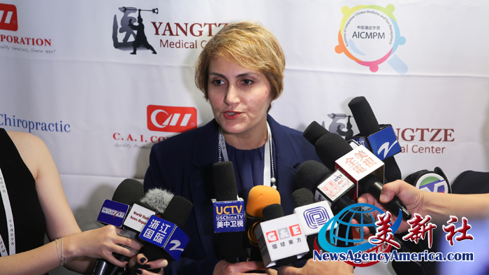 中医痛症学苑在加州注册成立,创院院长张磊(中)接受媒体采访