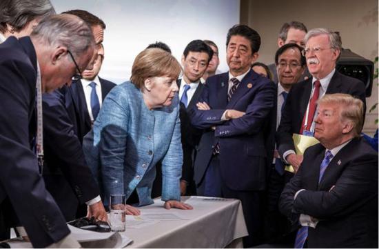 其中德國總理默克爾在各國領導人的簇擁下當面向川普發起質問的一張照片,更是火爆了網絡。而川普也提前離開了這場氣氛對美國極爲不利的G7峯會。