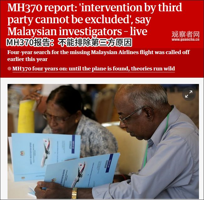 英國《衛報》報道,馬航失蹤事件國際調查小組負責人、馬來西亞民航局前總監郭師傳(Kok Soo Chon)在發佈會上表示,這並非“最終報告”,而只是一份“調查報告”,包括英國和澳大利亞在內的另外7個國家與馬來西亞一同發佈這份報告。