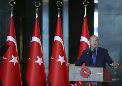 8月13日,土耳其總統埃爾多安在安卡拉發表演講。土耳其總統埃爾多安當天表示,土耳其經濟正在遭受“攻擊”,但土耳其有能力抵禦這一攻擊。(新華社/美聯)