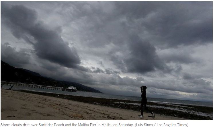 1月5日晚,Malibu海岸烏云密布(《洛杉磯時報》圖片)