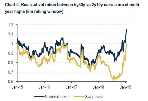 美銀美林指出,在以上三種情形中, 扶梯式是最有可能的。隨着更多經濟數據出爐,顯示出經濟放緩加劇或是反彈,聯儲就需要做出行動了。美銀美林認爲,只要美聯儲保持耐心,收益率曲線陡峭的時機就不夠成熟。近幾周以來,儘管利差交易擁擠,2年期-10年期美債曲線仍然相對平緩。
