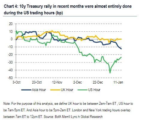 美銀美林對不同交易時間段的研究顯示(圖4),2019年四季度以來美債50個基點的變動,幾乎全部來自美國交易時段,顯示美國國內投資者對增長前景抱憂,並將這種擔憂計入價格。可以抱有一線希望的是,如果經濟數據持續低迷,市場表現和情緒足以迫使央行和政策層面更加寬鬆,令下半年前景相對光明一些。