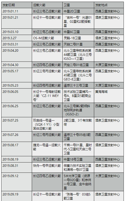 根據Space Launch Report公佈的數據,截至12月11日,2019年中國已進行31次火箭入軌發射,其中29次成功將衛星送上預定軌道。