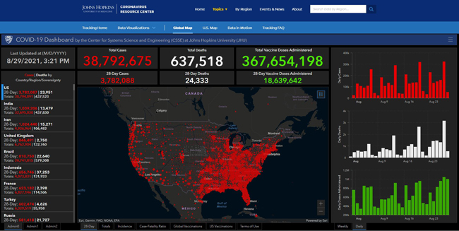 截止8月29日东部时间下午3点21分,美国累计病例超过3879万,达38,792,675个。8月29日累计死亡人数超过63.7万,达637,518人;累计接种新冠疫苗超过3.67亿剂,达367,654,198。