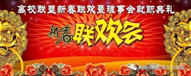 为庆祝新春佳节与南加州中华高校校友会联盟成立,联盟将于2017年2月11号(元宵节)举办高校联盟新春联欢暨理事会就职典礼,活动内容如下: