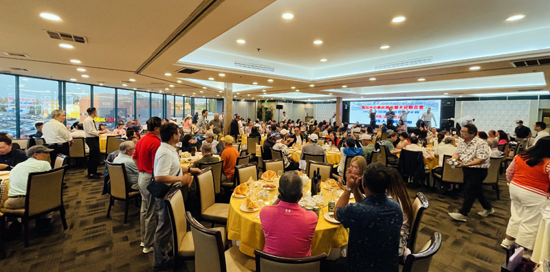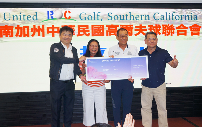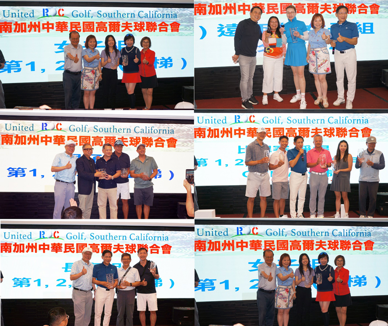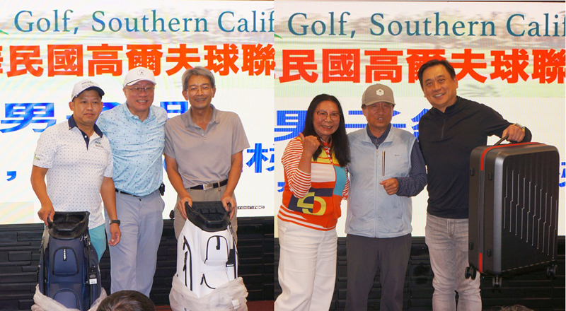 晚間,羅蘭崗半島海鮮酒家隆重舉行了頒獎晚宴。經文處紀欽耀處長、聯合會邱垂煌創會會長、柯欣侑現任會長,以及陳玲華前會長紛紛致辭,祝賀2025年『國慶盃高爾夫球邀請賽』成功完賽的同時,感謝球友們和南加州傳統和新僑僑界對賽事支持,也感謝贊助商家和個人為此次活動慷慨解囊。歷屆會長也齊齊亮相,展現聯合會的薪火相傳。