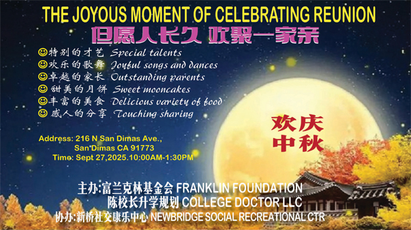 【美新社訊】9月27日上午,洛杉磯聖帝瑪斯市洋溢著溫暖與感動。以『關懷自閉症兒童及家庭』而聞名的富蘭克林基金會,隆重舉辦了一場別開生面的中秋聯歡會,提前為那些日夜辛勤守護特殊孩子的父母獻上最誠摯的節日祝福。