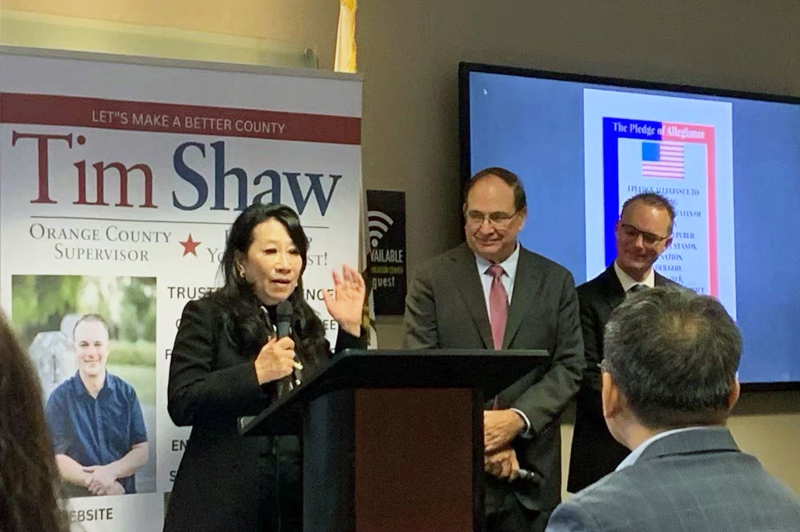 近百支持者齊聚一堂,其中包括橙郡共和黨主席 Will O’Neill, 前加州共和黨主席 Jim Brulte 參議員,加州前共和黨參議院領袖 Dick Ackerman 參議員,加州前共和黨參議院領袖Bob Huff參議員,加州眾議員 Tri Ta,橙郡學區總監 Stefen Bean 博士,橙郡教育委員會委員 Dr. Lisa Sparks,橙郡教育委員會委員 Dr. Ken Williams,橙郡教育委員會委員 Jorge Valdes,橙郡審計長 Andrew Hamilton,橙郡財務長/稅務官 Shari Freidenrich,Brea 市市長 Blair Stewart,Fountain Valley 市市長 Jim Cunneen,Garden Grove 市市長 Stephanie Klopfenstein,Newport Beach 市議員 Michelle Barto,Placentia 市議員 Ward Smith,Westminster 市市長 Chi Charlie Nguyen,Lake Forest 市議員 Ben Yu,聖塔安娜 (Santa Ana)聯合學區教委 Brenda Lebsac,前洛威爾(Lowell)聯合學區董事 Janet Averill,洛威爾(Lowell)聯合學區教委 Karen Shaw 等。