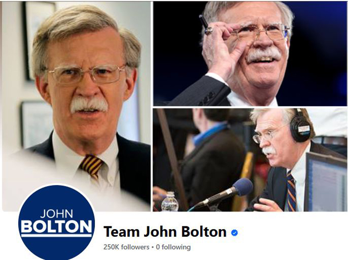 前国家安全顾问约翰·博尔顿(约翰·博尔顿团队社交媒体图片)