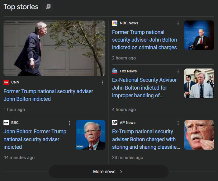 關鍵詞: 司法部,DOJ,大陪审团起诉,前特朗普国家安全顾问约翰·博尔顿,John Bolton,不当处理机密信息,非法传播国防信息(NDI),非法保存国防信息(NDI)文件