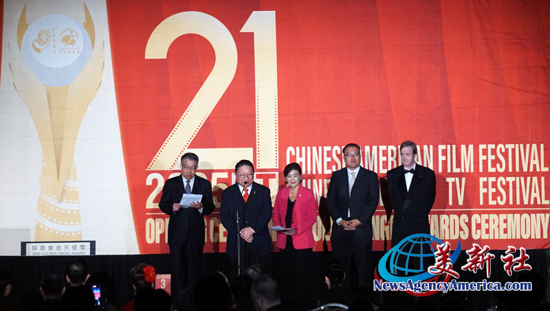 【洛杉矶讯】由美国鹰龙传媒公司主办,中国国务院新闻办公室、中国国家电影局、中国国家广电总局、中国电影家协会、中国驻洛杉矶总领事馆、美国洛杉矶郡郡政府共同支持的 2025 第21届中美电影节|中美电视节开幕式暨“金天使奖”颁奖典礼于11月6日在美国西岸洛杉矶隆重登场。