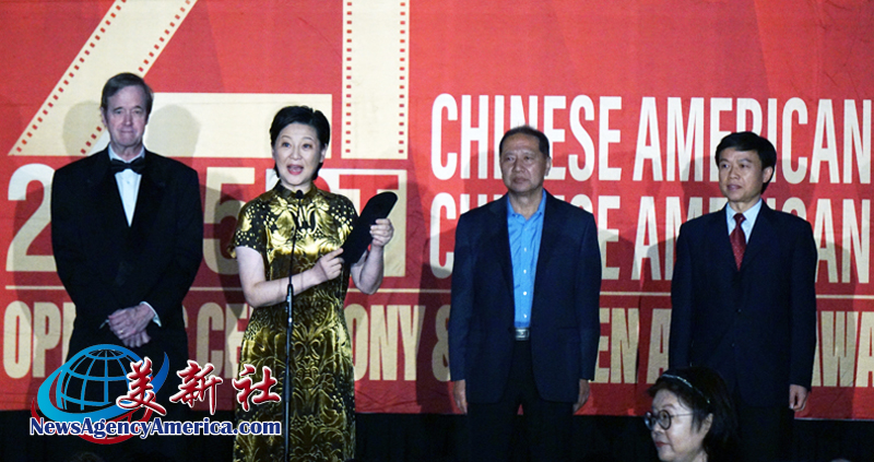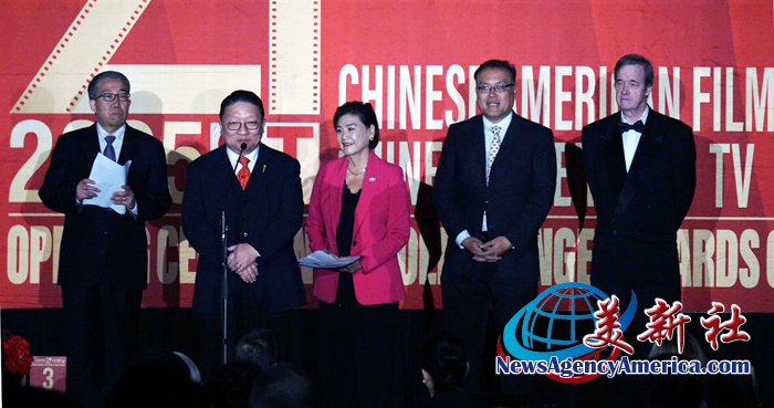 中国驻洛杉矶总领事馆郭少春总领事在致辞中肯定中美电影节和中美电视节在促进中美影视文化交流,民间友谊等方面的积极贡献,祝福本年度双节成功和圆满,也向所有获奖者表达诚挚的祝贺与祝福。