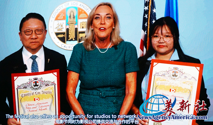 洛杉矶郡第五区郡长凯瑟琳·巴格(Katherican Barger)为今年的“金天使奖”颁奖典礼发来祝贺视频,再度宣布洛杉矶郡连续第十年将11月命名为洛杉矶郡“中美电影节|中美电视节月”。