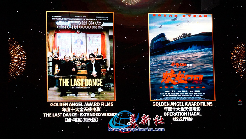 《水饺皇后》、《浪浪山小妖怪》、《破▫️地狱—加长版》、《营救飞虎》、《只此青绿》、《熊猫计划》、《蛟龙行动》、《小巷人家》、《六姊妹》、《国色芳华》等优秀影视作品分别荣获“金天使奖”十大电影和电视剧殊荣。