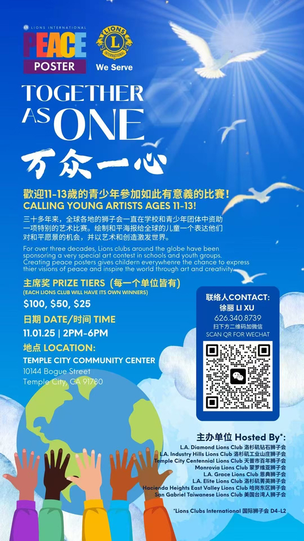 【美新社訊】國際獅子會年度「和平海報比賽(Peace Poster Contest)」於11月1日在 Temple City Community Center 隆重舉行。