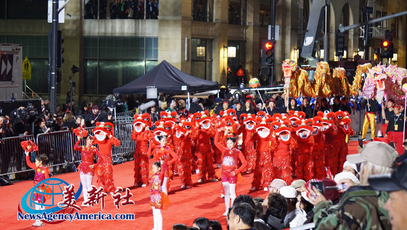 由美中文化协会与美国奥淇宏盛舞狮团组织的 50 位青少年舞狮队活