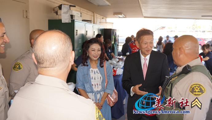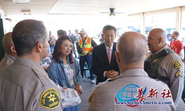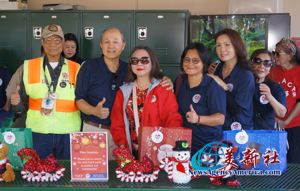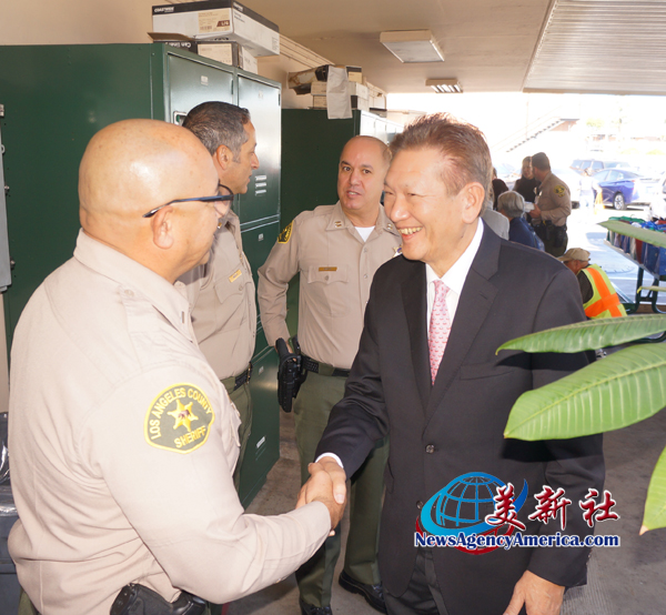 【美新社洛杉磯訊】在年終寒冬與治安壓力交織之際,華人社區再次以行動表達對第一線執法人員的堅定支持。12 月10日,哈崗華人協會聯合『社區治安人人有責』基金會(TACF),第四度走進洛杉磯郡警察局(LASD)工業市分局舉行『寒冬送暖』活動,向長年守護社區安全的警官們致上最誠摯的感謝。