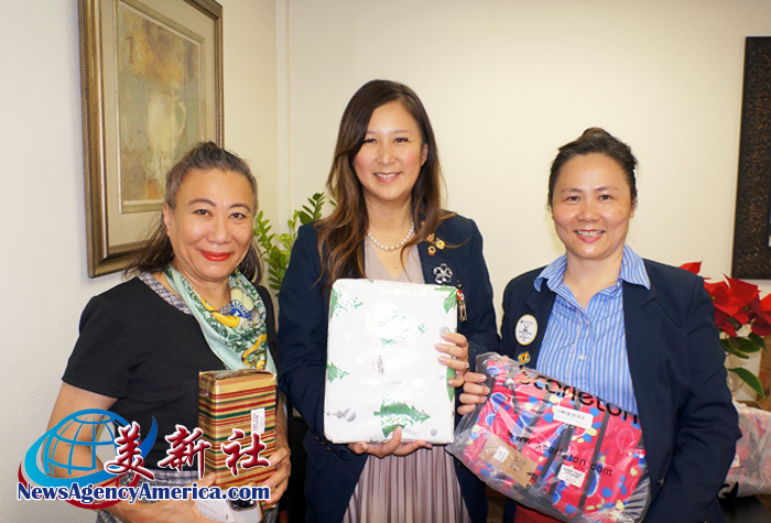 國際獅子會 D4-L2 區總監 Angel Peil(裴映棋,中),與 D4-L2 區聖蓋博專區主席 Angie Wang(左)、洛杉磯鑽石獅子會理事長 Wei Huang(黃偉,右)