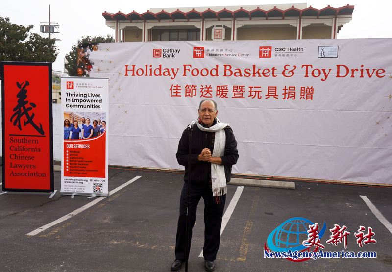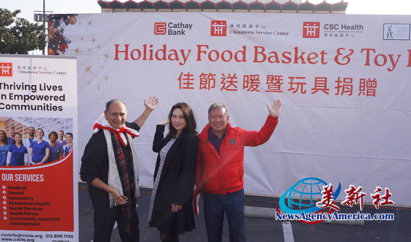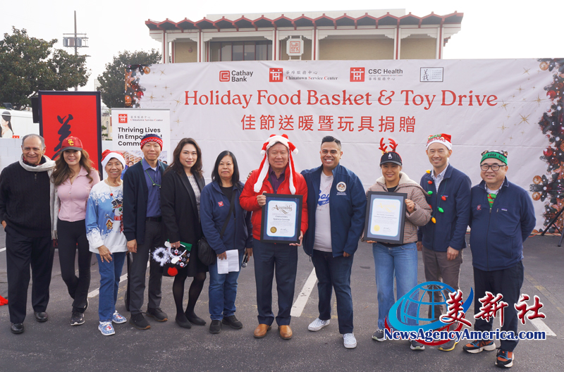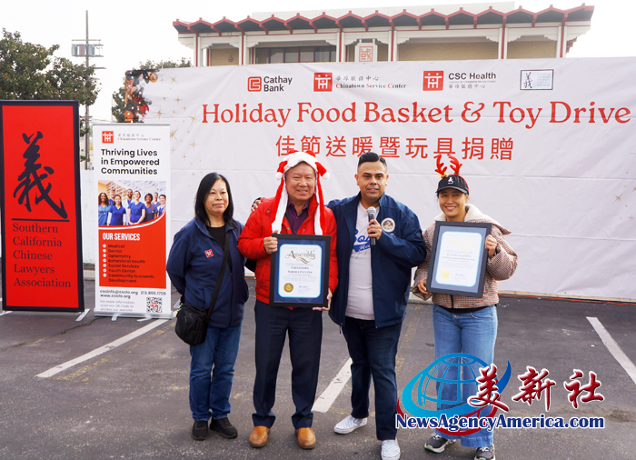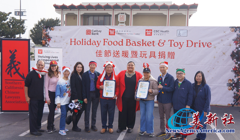 【美新社洛杉磯訊】12月13日週六,華埠服務中心(Chinatown Service Center,CSC)與南加州華人律師協會(Southern California Chinese Lawyers Association,SCCLA)於華埠國泰銀行(Cathay Bank)停車場共同舉辦『第39屆華埠佳節送暖』年度社區活動,為華埠弱勢家庭送上實質援助與節慶關懷。
