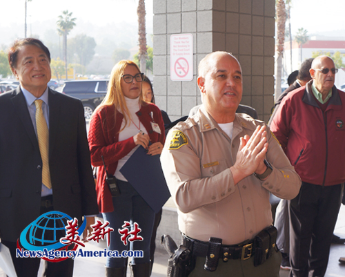 洛杉磯郡縣政委員蘇麗絲(Hilda L. Solis)辦公室於18號上午,邀請 LASD 工業市分局為學區內學子傳遞耶誕溫暖,不只警政聯手,本次也邀請民間共襄盛舉,民間代表華興保險也一同參與捐贈活動。