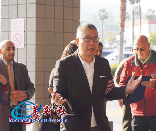 辦公室代表 Ryan Serrano 代表洛杉磯郡第一區郡長蘇麗絲(Hilda L. Solis)致辭,感謝上述出席嘉賓對此次活動給予財力、物力、人力方面的大力支持,特別是華興保險總裁張國興和好友的樂捐,在善款佔比超過 50%。