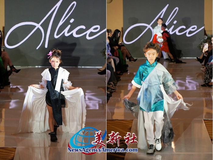 Alice,品牌服装由年仅 16 岁的青年设计师 Alice Chen 操刀设计。12 位华裔小模特带领观众走进传统文化与潮流美学融合的国潮新篇。