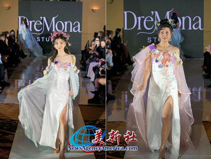 紧随其后的 Dre’Mona Studio 童装高定礼服,由来自全美的近 40 位精英华裔少儿模特,共同完成了一场如梦似幻的“繁花盛宴”。