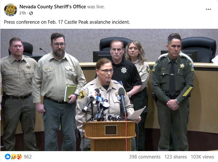 新闻发布会(加州内华达郡警长办公室(NCSO)社交媒体图片)