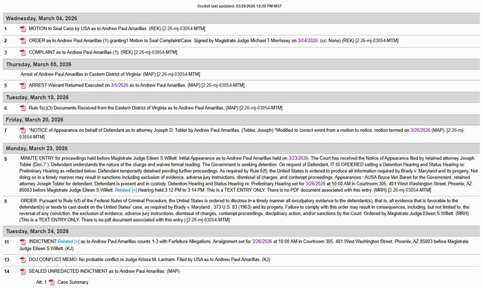 🏛 🏛 亚利桑那州联邦地区法院文件显示: