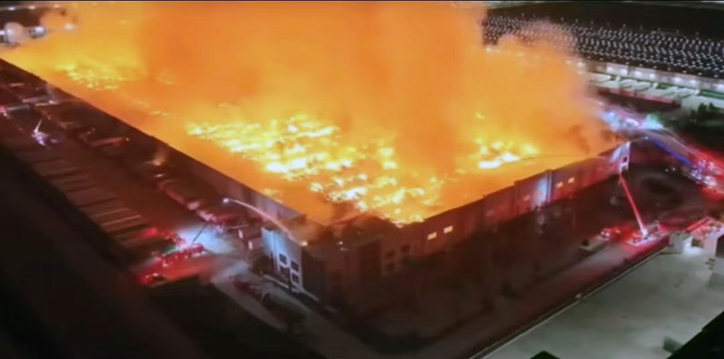 安大略(Ontario)倉庫大火(社交媒體圖片)