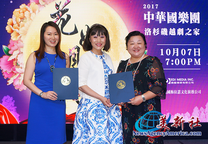 核桃市市長蘇王秀蘭專程趕到發布會現場,向美國鷹龍傳媒總經理林淑婷,梅拉諾文化演藝公司執行總監、洛杉磯越劇之家校長鄔素斐,頒發賀狀。蘇王秀蘭市長稱讚舉行中國國樂是中華傳統藝術之瑰寶,最具有傳承價值。此次演出更是請到最一流的指揮和演奏家,讓人非常期待演出的盛況。