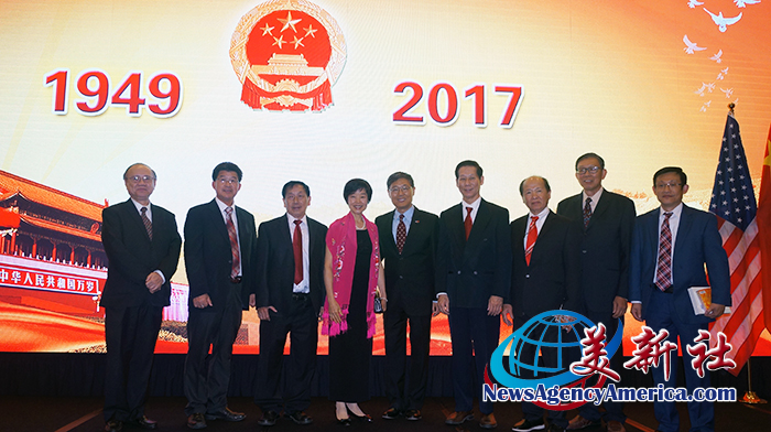聖伯納迪諾縣縣政委員海格曼(Curt Hagman),洛杉磯市副市長賀琪珍(Amb Nina Hachigian),洛杉磯市市議員柳戴維(David E.Ryu),前美國國安會亞洲事務高級主任貝德(Jeffrey A. Bader),加州眾議員周本立,阿蒂西亞市市長阿里.塔基(Ali Taj),核桃市市長蘇王秀蘭,蒙特利公園市副市長林達堅、市議員陳贊新,聖蓋博市市議員廖欽和,國會眾議員羅伊斯(Ed Royce)代表Stephanie Hu,加州眾議員Al Mutatsuchi代表Aret Frost,洛杉磯縣縣政委員會委員Hilda Solis代表Lawrence Shih,洛杉磯縣縣政委員會委員Katheryn Barger代表吳忠國,前美國教育部助理副部長張曼君等美國民選官員及代表,以及來自南加州的老僑、傳統僑社、新僑、越柬寮華人團體、政商界、藝術界、學術界等,兩岸四地各界代表近千人出席了當天的慶祝活動,共襄盛舉為中華人民共和國慶生。