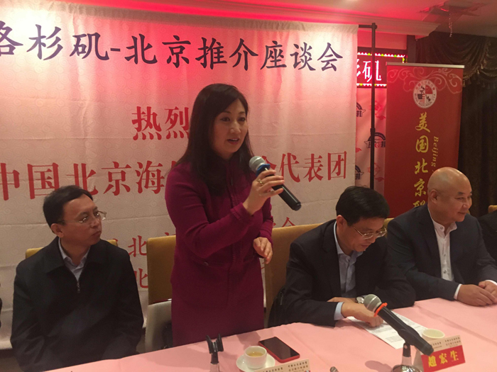 中國北京海外聯誼會成立於1987年,是一個民間性社團組織。聯誼會實行理事制,理事遍及海內外。中國北京海外聯誼會的宗旨:通過組織和開展各種活動,發揮首都優勢,廣交朋友,增進交流與合作,為海內外各界人土和北京的各項事業服務,為促進祖國統一與民族振興服務。此次訪美北京推介會的代表團團長趙宏生表示: 剛剛勝利召開的十九大十分振奮人心,習總書記的講話所提到的方方面面受到海內外的朋友們關注,十九大的召開對中國未來的發展將會產生重要的影響,對世界的發展也將產生重要影響。北京是首都,習總書記先後兩次視察北京並講話,並對北京的功能進行定位,北京是政治中心、文化中心、國際交往中心、和科技創新中心,同時也指出了要將北京建設成一個國際化的和諧之都。趙宏生副部長說,北京在中央政府、北京市委領導下,堅決貫徹執行十九大方針,把各項工作做好。趙宏生向大家介紹了北京日新月異的飛速發展,歡迎朋友們常回家,回北京看看,歡迎大家到北京投資發展。歡迎加強彼此間的交流。