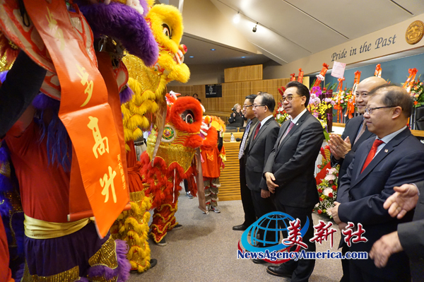 中國駐洛杉磯總領館副總領事代雙明前往祝賀,並頒發賀狀