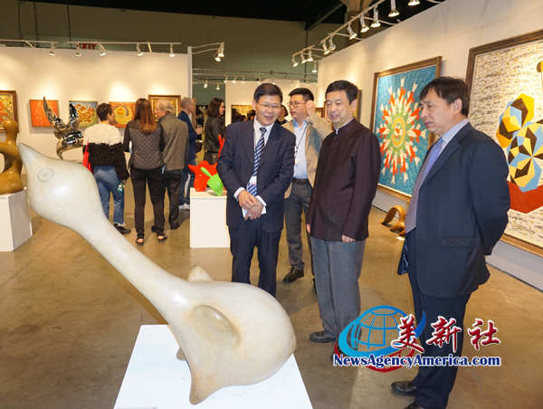 當天晚間8:00, 中國國家展區舉行了隆重的開展儀式。中國駐洛杉磯總領館文化參贊古今、文化領事王瑾、中國文化傳媒集團副總經理江心、「洛杉磯藝術博覽會」創辦人Kim Martindale , Palm Beach Show Group 總裁Scott Diament等出席了當天的中國展區開幕儀式。