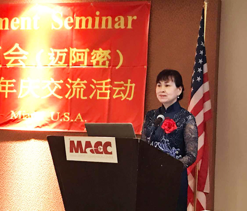中國駐休斯頓副總領事劉紅梅發表了熱情洋溢的講話,她特別提到祝賀美中廣東總商會成立十週年,並肯定美中廣東總商會為促進中美之間的經貿交流與合作所作出的努力和貢獻。另外,今天正巧是一年前中華人民共和國習近平主席與美國特朗普總統在邁阿密海湖莊園“習特會”一周年紀念日,面對中美目前的經貿情況,希望雙方能夠在“習特會”精神的基礎上繼續推進中美之間的經濟貿易關係,為兩國人民帶來實惠。