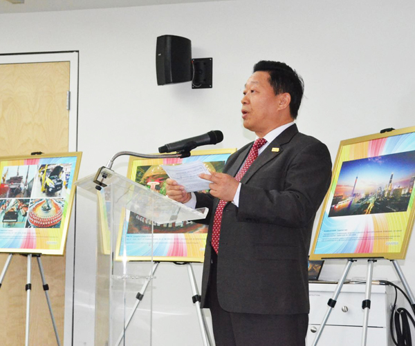 美国麻州商务发展与国际贸易厅副厅长范文南仔细观看了摆放在会议室周围的几十幅摄影作品,每一幅作品都反映了广东不同方面成功发展情况。并发表了热情洋溢的致辞,麻州与广东省自从三十五年前签署了友好省州备忘录建立了友好关系至今,双方保持着不断的交流,双方的发展都是巨大的,各有各的优势,而且在许多方面也都有着类似的经验,如在环保领域的电动汽车、风力发电场的建设、教育科研、旅游、文化体育等等。作为他本人在八十年代就去过中国广东,后来新婚蜜月也都选在了广州,看到了广东飞速发展的情况,希望双方能够进一步加强人员往来进行友好交流,加速促进共同发展。