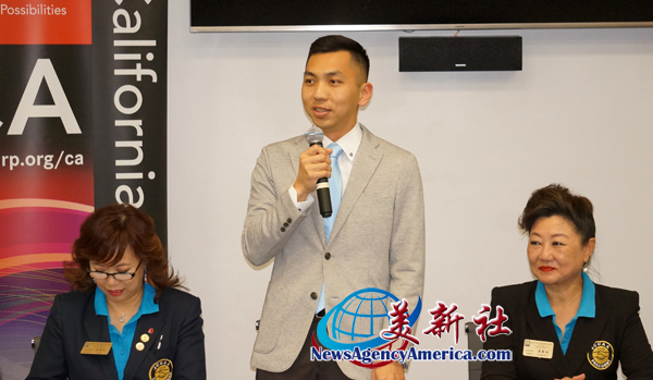 南加州中國大專院校聯合校友會前會長劉煥君,此次作為贊助商家AARP代表大力支持慶祝大會。