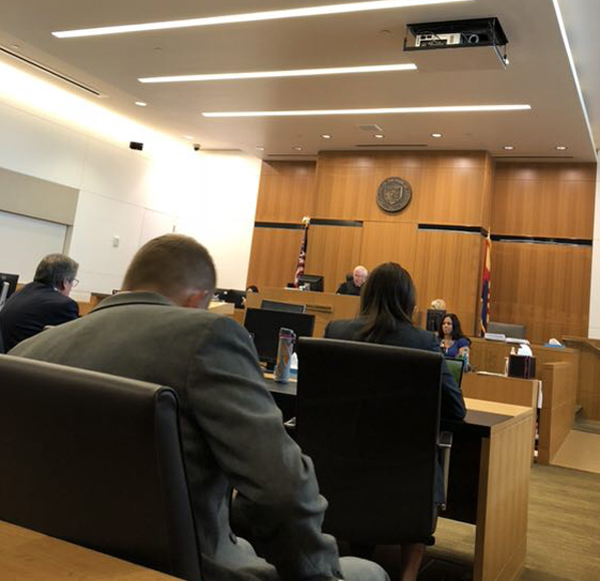 6月12日上午,受害人江玥的父親江勇、表姐徐翔,在中國駐洛杉磯總領館僑務組組長湯長安領事、教育組領事曹乾、亞利桑那州華人華僑聯合總會理事長楊文田等僑胞的陪同下,來到馬里科帕縣高等法院(Maricopa County Superior Court)共同參與江玥命案聽證會。