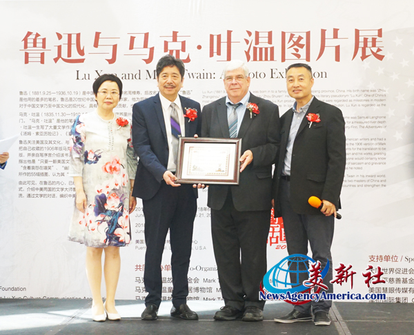 【美新社訊】為傳播魯迅精神,弘揚中國現代先進文化,促進中美兩國文化交流,由魯迅文化基金會、美國魯迅文化傳播協會和中國紹興市人民政府主辦的《魯迅與馬克·吐溫圖片展》於6月16日上午在Puente Hills Mall隆重舉行開幕典禮。魯迅長孫、魯迅文化基金會會長周令飛先生親臨現場,受到各界人士的熱烈歡迎。