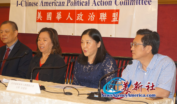 美國華人政治聯盟名譽主席葉安利(左一)主持當天記者會。