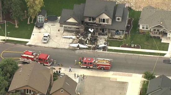 事故現場的照片顯示,這架白色飛機在前院起火後已經基本被燒成碎片,旁邊還有一輛翻倒的已經被壓碎的汽車。而被飛機撞擊後的高檔住宅大大部門仍然完好無損,但房子前面被嚴重燒燬。