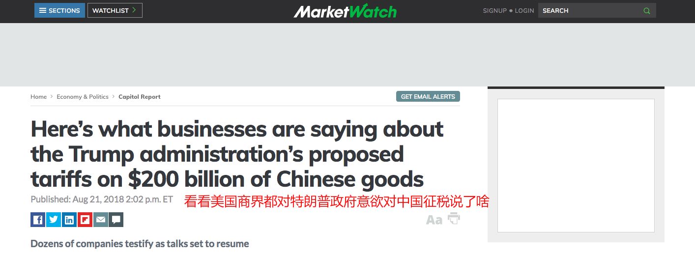 美國財經網站Market Watch盤點了一些企業在聽證會上的發言,一家總部位於亞特蘭大的傢俱公司稱,新關稅將對他們公司產生“毀滅性影響”,商品價格上漲最終會讓他們失去消費者。