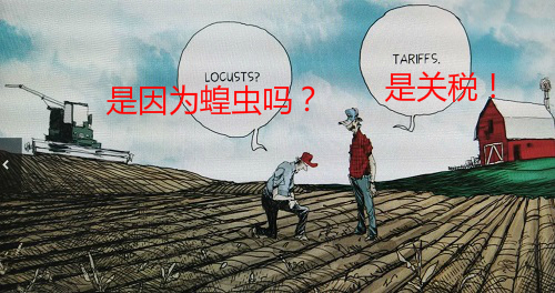 美國田地裏幾乎顆粒無收,一農民疑惑不解地問道:“是因爲蝗蟲嗎?”另外一農民長嘆:“是關稅!”(原載《美國新聞與世界報道》週刊網站)