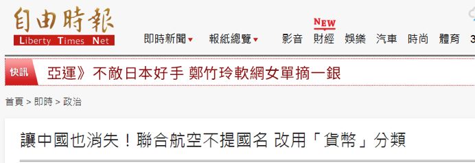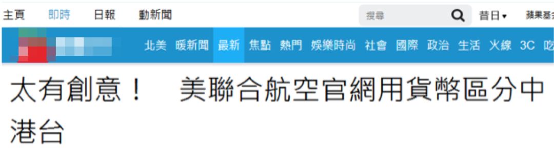 該報宣稱,“中國民航局先前針對全球各大航空業者發佈‘一中追殺令’,要求將臺灣列爲國家或與中國並列者進行更改,包括堅持到最後一刻的美國航空等多數航空公司選擇配合,但仍有部分業者出奇招,有網友就發現,美國聯合航空的網頁上,‘臺灣’、‘中國’、‘香港’變成以‘貨幣’選擇所在地”。