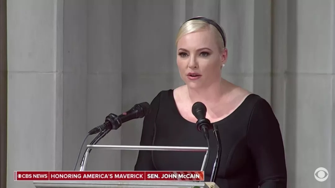 麥凱恩的女兒梅根在父親葬禮上致辭。(圖片來自CBS News截屏)