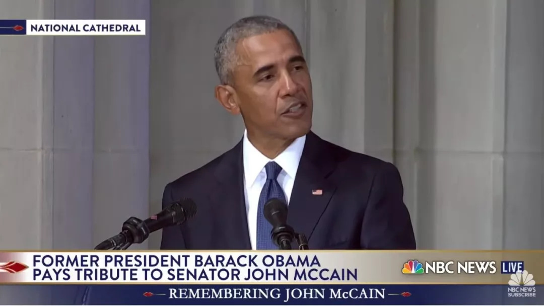 前總統奧巴馬在約翰·麥凱恩參議員葬禮上致辭。(圖片來自NBC News截屏)