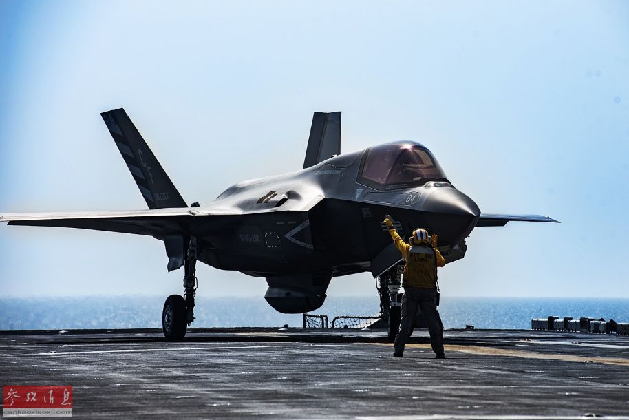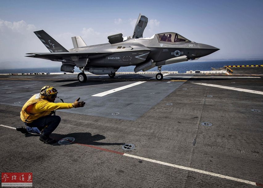 近日,美國海軍陸戰隊的F-35B短垂隱身戰機伴隨“埃塞克斯”號兩棲攻擊艦(LHD-2)抵達吉布提附近海域進行作戰演練,這是F-35B自服役以來首次抵達非洲進行作戰部署。圖爲F-35B準備從“埃塞克斯”號上起飛。