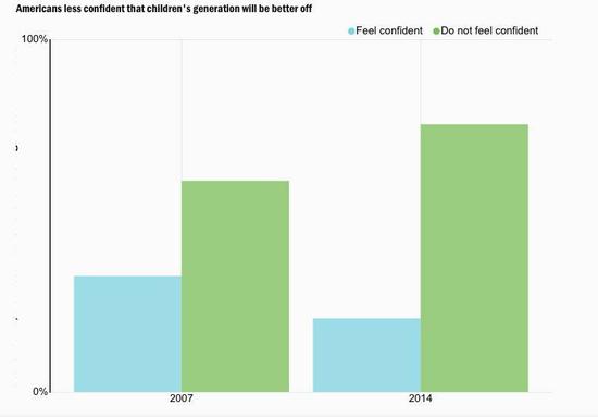 2014年調查顯示,認爲未來一代會比自己更好的比例,僅有21%,而2007年時這一比例有三分之一。